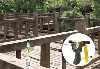 Achieve perfect accuracy using the Laser Guided Slingshot! The slingshot has a laser-powered sight that is used to improve accuracy.